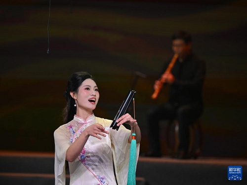 12月10日,南音社團(tuán)代表在“南音薪傳 四海弦歌”專場演出上演唱《遠(yuǎn)望鄉(xiāng)里》。(新華社記者 姜克紅 攝)