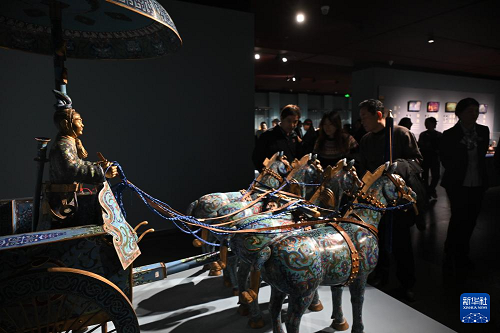 12月15日,觀眾參觀展出的景泰藍(lán)作品《兵馬戰(zhàn)車》。(新華社記者 金良快 攝)