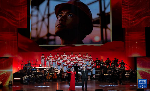 12月16日,在北京二七劇場(chǎng)舉辦的“中國(guó)夢(mèng)·勞動(dòng)美”2026新年音樂會(huì)上,演員在大合唱《億萬職工心向黨》中歌唱。(新華社記者 才揚(yáng) 攝)