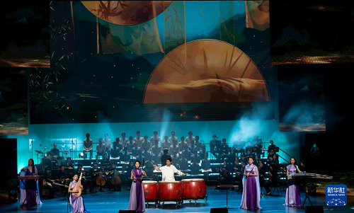 12月16日,在北京二七劇場(chǎng)舉辦的“中國(guó)夢(mèng)·勞動(dòng)美”2026新年音樂會(huì)上,演員表演民樂合奏《錦繡畫卷》。(新華社記者 才揚(yáng) 攝)