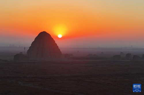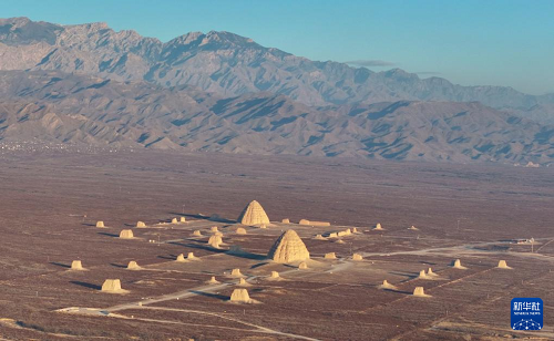 12月28日清晨拍攝的西夏陵(無人機(jī)照片)。(新華社發(fā) 袁宏彥 攝)