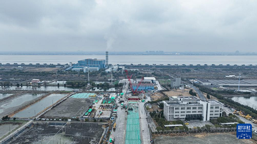 1月20日拍攝的錢(qián)塘江高鐵盾構(gòu)隧道施工現(xiàn)場(chǎng)(無(wú)人機(jī)照片)。(新華社發(fā) 王欣 攝)
