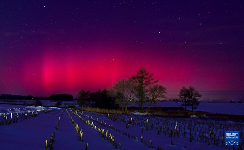 1月20日在位于黑龍江省黑河市的北大荒集團(tuán)北安分公司二龍山農(nóng)場有限公司拍攝的絢麗極光。(新華社發(fā) 錢泊羽 攝)