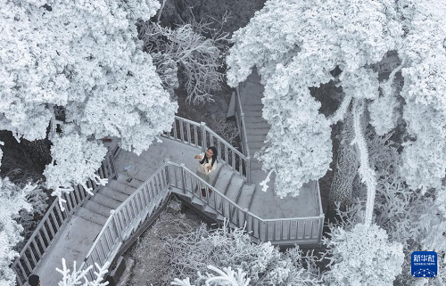 1月22日,游客在湖南省衡陽市南岳衡山風景區(qū)賞景游玩。(新華社發(fā) 曹正平 攝)