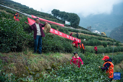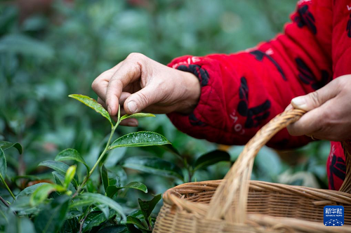 1月29日,湖北省秭歸縣郭家壩鎮(zhèn)王家?guī)X村茶農(nóng)在“絲綿茶1號”茶園采摘茶葉嫩芽。(新華社發(fā) 雷勇 攝)