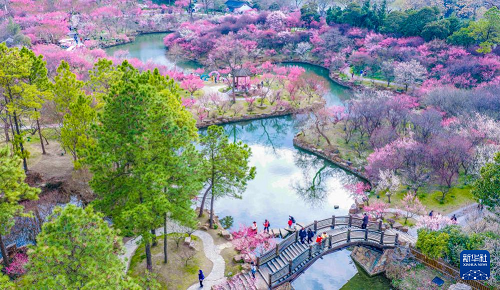 2月25日,游客在江蘇南京明孝陵梅花山上賞梅踏春(無人機(jī)照片)。(新華社發(fā) 楊素平 攝)