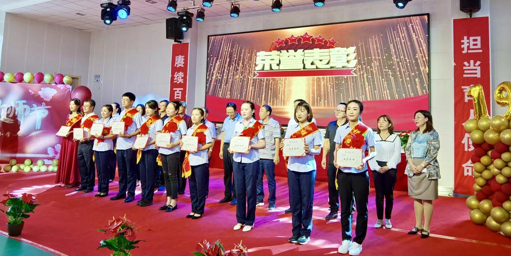 活動現(xiàn)場,學(xué)校對14名優(yōu)秀教師進(jìn)行了表彰,其中1名為優(yōu)秀教育工作者,8名為模范教師,5名為模范班主任。通過表彰先進(jìn),鼓勵老師們再接再厲,繼續(xù)發(fā)揮愛崗敬業(yè)、立德樹人,三尺講臺育英才的精神,為下一代成長教育發(fā)揮更大的作用。