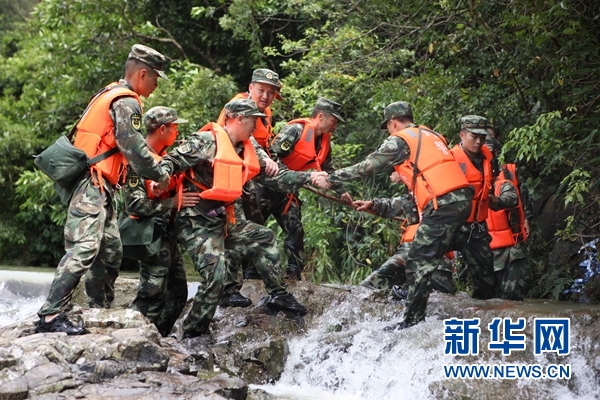 5月29日,武警官兵在事發(fā)河段附近搜救失蹤人員。當日,廣東省江門市所轄臺山市人民政府披露,28日發(fā)生的臺山市端芬鎮(zhèn)鳳凰峽旅游區(qū)游客漂流遇山洪落水事故中,死亡人數(shù)升至8人,其中7人身份已經(jīng)確定。新華社發(fā)(王東震 攝)