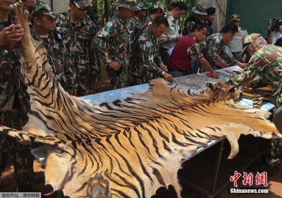 資料圖:當?shù)貢r間6月2日,據(jù)外媒報道,泰國野生動物保護機構(gòu)又在涉事寺廟中發(fā)現(xiàn)了虎皮和大批用老虎尸體制作的護身符。