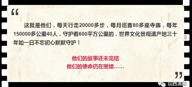 內(nèi)容簡介:該片以守護(hù)為主題,以傳承為主線,以現(xiàn)任山西忻州五臺(tái)山消防大隊(duì)工程師劉川為第一人稱視角,利用紀(jì)實(shí)跟拍的手法,通過對以劉川為代表的五臺(tái)山消防大隊(duì)官兵在消防監(jiān)督檢查、消防執(zhí)勤保衛(wèi)、日常工作生活等方面點(diǎn)點(diǎn)滴滴的真實(shí)紀(jì)錄,向觀眾展示了五臺(tái)山消防官兵在長期默默守護(hù)五臺(tái)山600平方公里的世界文化景觀遺產(chǎn)地和數(shù)十座文物古建筑消防安全中的辛勤付出和無私奉獻(xiàn),也讓觀眾了解了30多年來深深根植于每一代五臺(tái)山消防人心中的那份不忘初心、不畏艱辛、舍己奉公、代代傳承的五臺(tái)山消防精神。