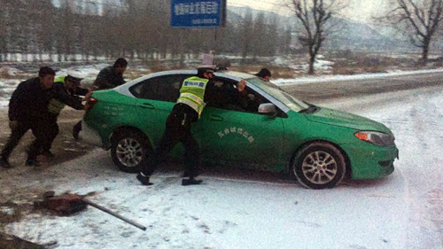 | 五臺交警雪天堅守崗位保暢通 |