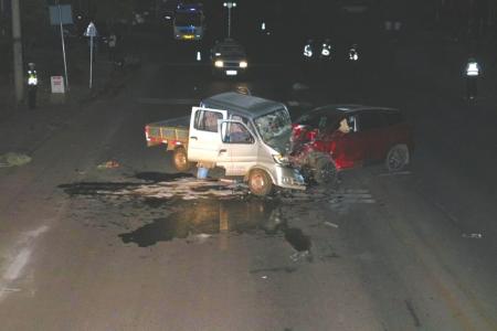 民警趕到現(xiàn)場(chǎng)發(fā)現(xiàn),一輛紅色小型普通客車與一輛銀色輕型普通貨車相撞,兩車受損嚴(yán)重。紅色小型普通客車旁還躺著一名年輕男性胡某某(已確認(rèn)死亡)。