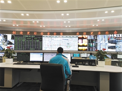 杭州九峰垃圾焚燒發(fā)電廠中控室,工作人員通過電子屏幕實時監(jiān)控各個區(qū)域。本版攝影/新京報記者 黃哲程