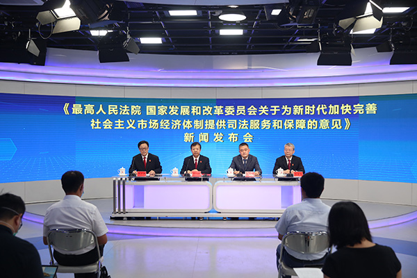 人民網(wǎng)北京7月22日電(薄晨棣)社會(huì)主義市場(chǎng)經(jīng)濟(jì)體制是中國(guó)特色社會(huì)主義的重大理論和實(shí)踐創(chuàng)新。今天,最高人民法院聯(lián)合國(guó)家發(fā)展和改革委員會(huì),共同發(fā)布《關(guān)于為新時(shí)代加快完善社會(huì)主義市場(chǎng)經(jīng)濟(jì)體制提供司法服務(wù)和保障的意見(jiàn)》(以下簡(jiǎn)稱《貫徹意見(jiàn)》),旨在充分發(fā)揮法治保民生、固根本、穩(wěn)預(yù)期、利長(zhǎng)遠(yuǎn)的功能,營(yíng)造適應(yīng)經(jīng)濟(jì)高質(zhì)量發(fā)展的法治化營(yíng)商環(huán)境。