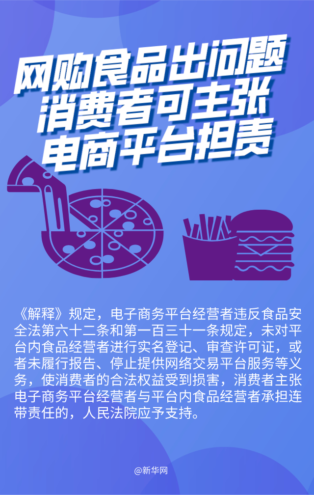 對(duì)此,《解釋》規(guī)定,電子商務(wù)平臺(tái)經(jīng)營(yíng)者違反食品安全法第六十二條和第一百三十一條規(guī)定,未對(duì)平臺(tái)內(nèi)食品經(jīng)營(yíng)者進(jìn)行實(shí)名登記、審查許可證,或者未履行報(bào)告、停止提供網(wǎng)絡(luò)交易平臺(tái)服務(wù)等義務(wù),使消費(fèi)者的合法權(quán)益受到損害,消費(fèi)者主張電子商務(wù)平臺(tái)經(jīng)營(yíng)者與平臺(tái)內(nèi)食品經(jīng)營(yíng)者承擔(dān)連帶責(zé)任的,人民法院應(yīng)予支持。