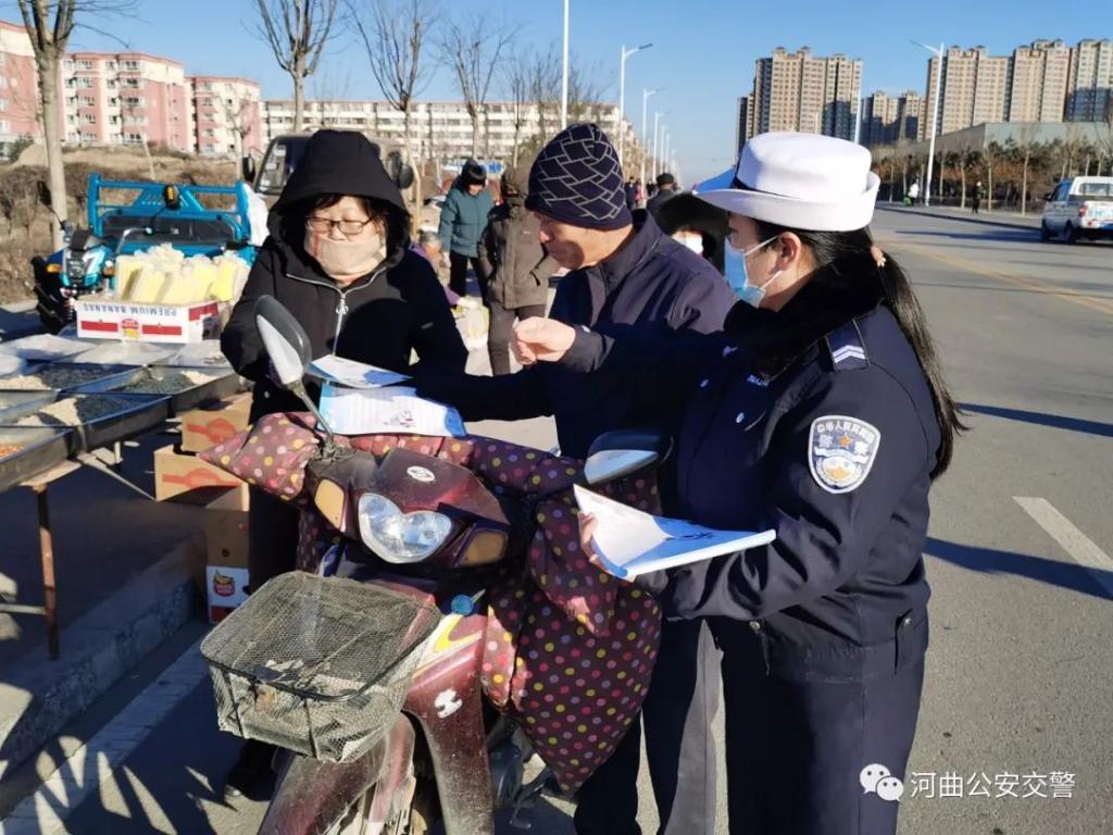 12月17日,河曲縣公安局交警大隊(duì)宣教民警走進(jìn)移民村集市,積極開展“冬季交通安全”宣傳活動(dòng)。