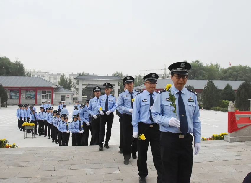 活動(dòng)上,全體人員警容嚴(yán)整、神情肅穆,整齊列隊(duì)在紀(jì)念碑前。伴隨著《獻(xiàn)花曲》,8名禮兵邁著整齊步伐,緩步走向革命烈士紀(jì)念碑前敬獻(xiàn)花籃。隨后,全場(chǎng)肅立,脫帽致敬向公安英烈默哀。默哀結(jié)束后,全體人員重溫了入警誓詞,烈士陳玉書(shū)之女、直屬分局新建路派出所民警陳慧梅作了表態(tài)發(fā)言。最后,全體人員手捧菊花,緩步繞行,瞻仰紀(jì)念碑,敬獻(xiàn)鮮花,向?yàn)樾弥萁夥攀聵I(yè)和公安事業(yè)英勇獻(xiàn)身的革命烈士致以崇高的敬意和深切的悼念。