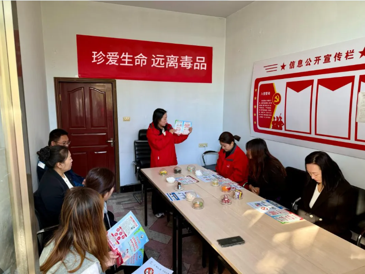 活動中,社工在保險公司醒目位置張貼懸掛禁毒標語條幅,并在服務大廳電視機上輪播禁毒宣傳片,向公司員工和客戶講解毒品的種類、危害和識別防范技巧,提醒大家要自覺遵守法律法規(guī),不斷加強禁毒知識的學習,切實提高識毒、防毒、拒毒意識,做到不種毒、不制毒、不販毒、不吸毒。同時,民警還結合真實案例,向大家深入講解了毒品對個人、家庭和社會帶來的嚴重危害,通過講解,使大家對毒品有了更為清晰和深刻的認識,鼓勵大家積極當好禁毒宣傳員,引導家人、親戚朋友拒絕毒品,遠離毒品。