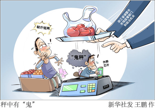 一臺小小的“鬼秤”,不僅侵害群眾合法權(quán)益,更有損公平誠信的市場環(huán)境。執(zhí)法部門要主動作為,為公序良俗撐腰,讓群眾利益得到保障;另一方面,遭遇缺斤短兩問題,消費者也不要忍氣吞聲,多和不法現(xiàn)象“較真”:買完菜上“安心秤”復(fù)稱一下,對不法行為堅決舉報。大家合力,一起讓“鬼秤”無處遁形。