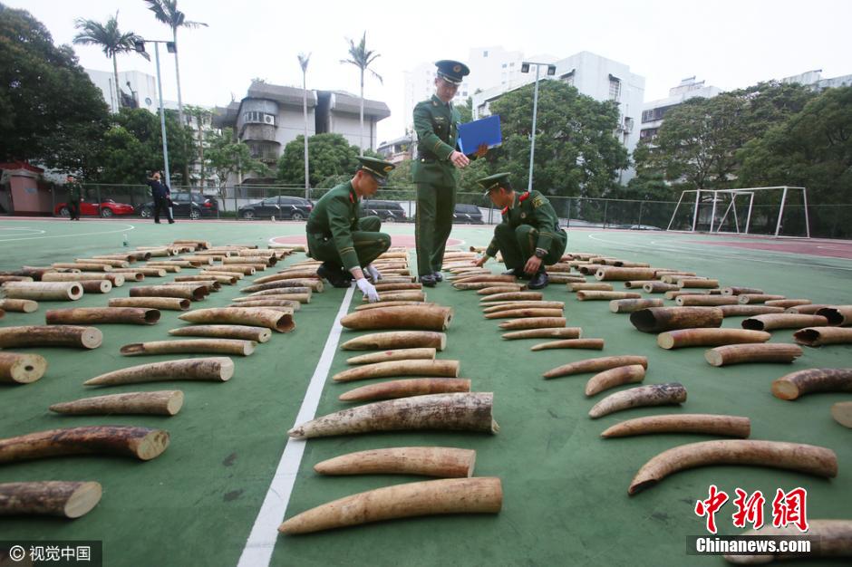 3月21日,廣東公安邊防總隊(duì)正式對外通報稱,珠海市邊防支隊(duì)成功破獲一起特大涉嫌走私象牙案,查獲走私象牙221塊,共計約450千克,市值1800萬元人民幣,這是近年來全國邊防部門查獲的最大宗走私象牙案。圖片來源:視覺中國