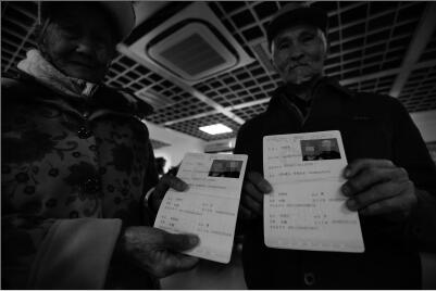 19日下午1點半,80歲的單大爹拿著剛剛補辦的結(jié)婚證,顫巍巍地坐在了官渡區(qū)便民服務(wù)中心二樓的椅子上。45年前,他的結(jié)婚證在一場大火中被燒毀。78歲的老伴符大媽站在一旁,一個勁地說著“太丟人了”!她知道,就在今天,他們剛剛補辦的結(jié)婚證上,將會蓋上一個藍框框,上面寫著:“雙方離婚,證件失效。昆明市官渡區(qū)婚姻登記處?!边@張新的結(jié)婚證,他們是為了離婚才補辦的。今年是他們綠寶石婚,這原本寓意圣潔和堅固的愛情。