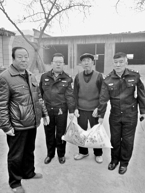 近年來,大隊(duì)把扶貧工作當(dāng)作一項(xiàng)政治任務(wù)抓在手上,為了更好地精準(zhǔn)扶貧,按計劃力爭提前完成扶貧攻堅任務(wù)。2015年,李晉生擔(dān)任了原平市南白鄉(xiāng)尚義村的第一書記,負(fù)責(zé)該村的幫扶工作。南白鄉(xiāng)尚義村是原平市的重點(diǎn)貧困村,也是交警大隊(duì)幫扶村,全村204人,貧困人口占80%。當(dāng)年12月17日,他自籌2000多元,購買了米、面、糧、油,與大隊(duì)的4位民警來到了南白鄉(xiāng)尚義村走訪慰問特困家庭。在全市開展精準(zhǔn)扶貧的攻堅階段,為了讓特困家庭度過溫暖的冬季,交警大隊(duì)民警進(jìn)村入戶共慰問五保戶、特困戶8戶,為他們送去了面粉、大米和食用油。同時,大隊(duì)長還看望了90歲高齡的抗戰(zhàn)老兵趙書良,1925年出生的趙書良老人,17歲時就參軍,在抗日戰(zhàn)爭中多次立功授獎。當(dāng)老人雙手接過慰問金后,激動地說:“還是共產(chǎn)黨好,人民警察和人民真是心連心啊!”