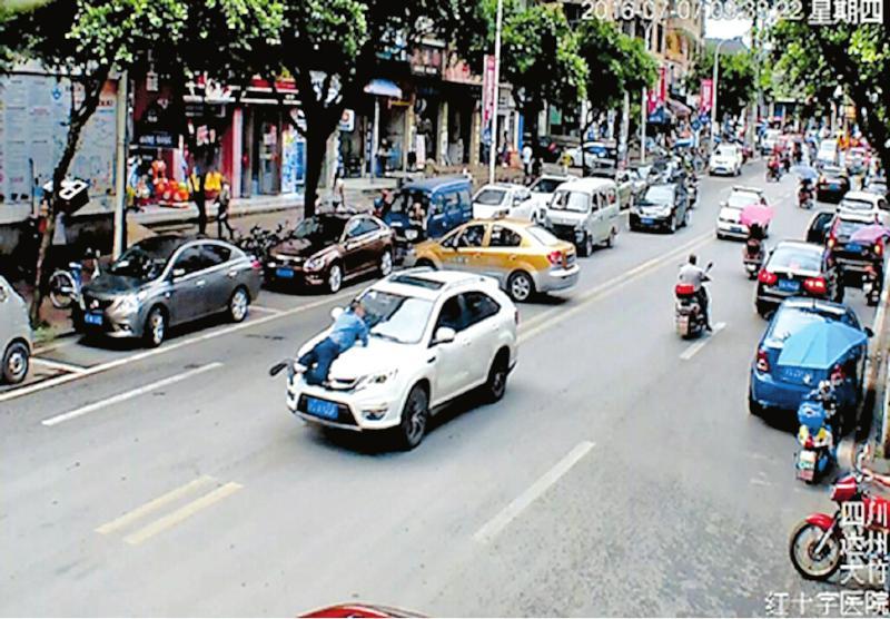 一輛白色的比亞迪轎車,載著一車乘客在市區(qū)橫沖直撞,并以時速50公里左右的速度,將一名執(zhí)法人員撞上引擎蓋,推行了300多米。緊接著,該轎車來了一個急轉(zhuǎn)彎,把執(zhí)法人員甩下地面后繼續(xù)逃跑……7月7日,電影中的“速度與激情”,在達(dá)州市大竹縣城真實上演。