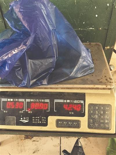 裝袋、充氧氣、過(guò)秤,整個(gè)過(guò)程,記者并沒有發(fā)現(xiàn)什么異樣?!?0元,給你刨了兩塊四的皮哦?!崩习鍖⑽r遞給記者。