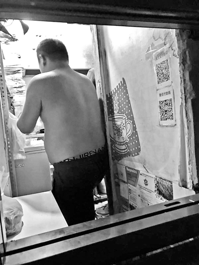 6月16日晚8時許,北青報記者再次來到“望京小腰(××店)”,看到窗口外圍聚了數(shù)名外賣平臺的送餐員,等待取餐。燒烤店內(nèi),兩名青年男子,一人赤膊,手拿多份訂單配置菜品、刷油、撒調(diào)料,另一人背身在燒烤架上烤制菜品。食物烤好后,赤膊男子用錫紙包裹好,外面套上紙袋和塑料袋,遞給送餐員。北青報記者詢問老板可否堂食,老板答復(fù)稱“可以”,但是要借用麻辣燙店內(nèi)桌椅。