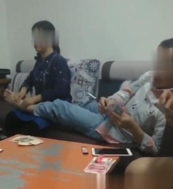 網(wǎng)傳視頻中,一名短發(fā)男子半躺在沙發(fā)上打牌,牌桌上擺放有不少現(xiàn)金。男子一條腿搭在旁邊女子的大腿上,女子正用雙手替男子按摩、揉搓腳部。舉報者稱視頻中的短發(fā)男子是廣西河池市宜州區(qū)龍頭鄉(xiāng)黨委書記“韋東海”,幫其按摩腳部的女子叫“王娟”,系龍頭鄉(xiāng)副鄉(xiāng)長。