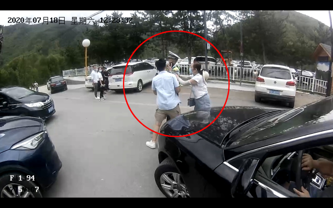 在對一輛車牌號為津N***22的黑色奧迪車輛粘貼《違法停車告知單》后,正準(zhǔn)備對該車進(jìn)行拍照取證時(shí),車主王*良一家三口趕來,對執(zhí)勤交警粘貼的《違法停車告知單》及執(zhí)勤交警身份有異議,便開始對執(zhí)勤交警進(jìn)行推搡、語言攻擊、阻撓交警拍照、惡意碰瓷,導(dǎo)致該路段發(fā)生了交通擁堵。執(zhí)勤交警張*夫害怕事態(tài)升級,便撥打110報(bào)警電話進(jìn)行報(bào)警。同時(shí)向帶隊(duì)民警及指揮中心匯報(bào)情況,請求周邊警力增援。