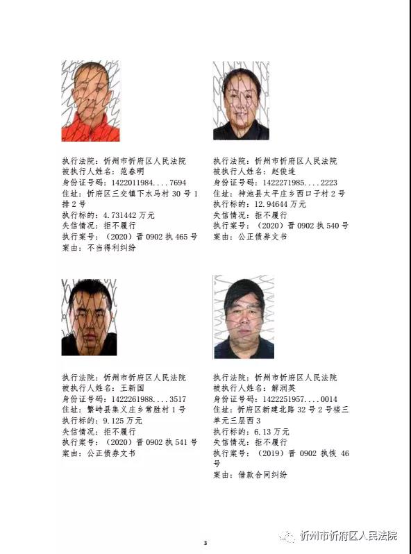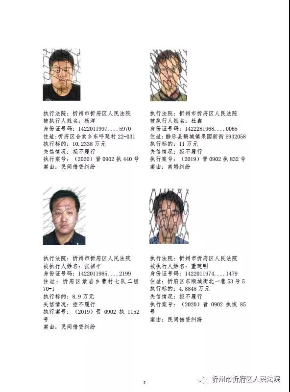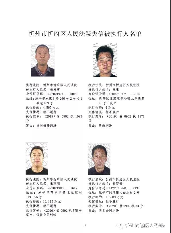 忻府區(qū)法院公布多名失信被執(zhí)行人