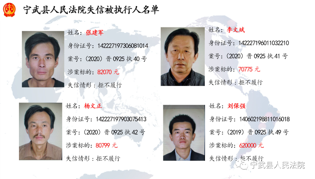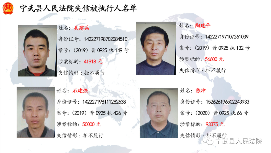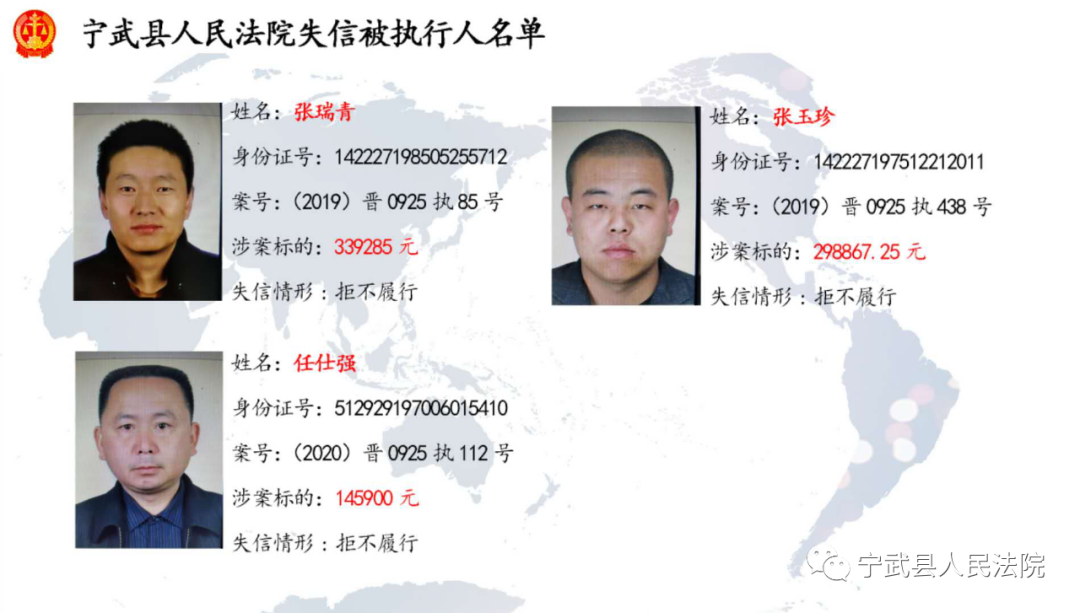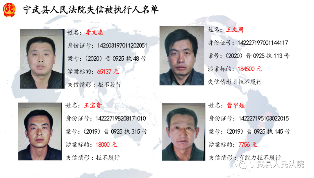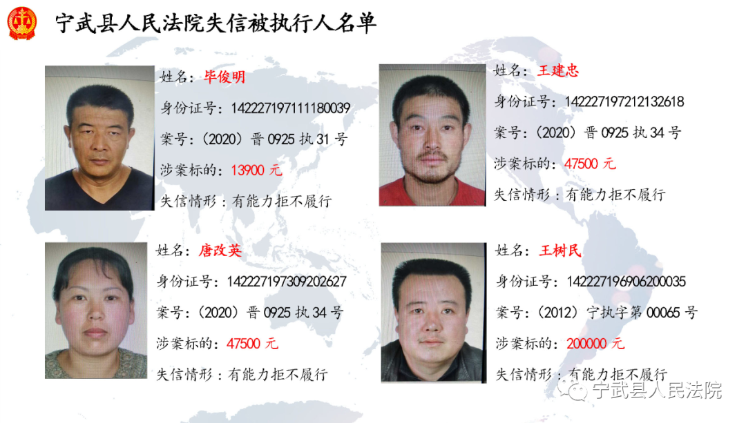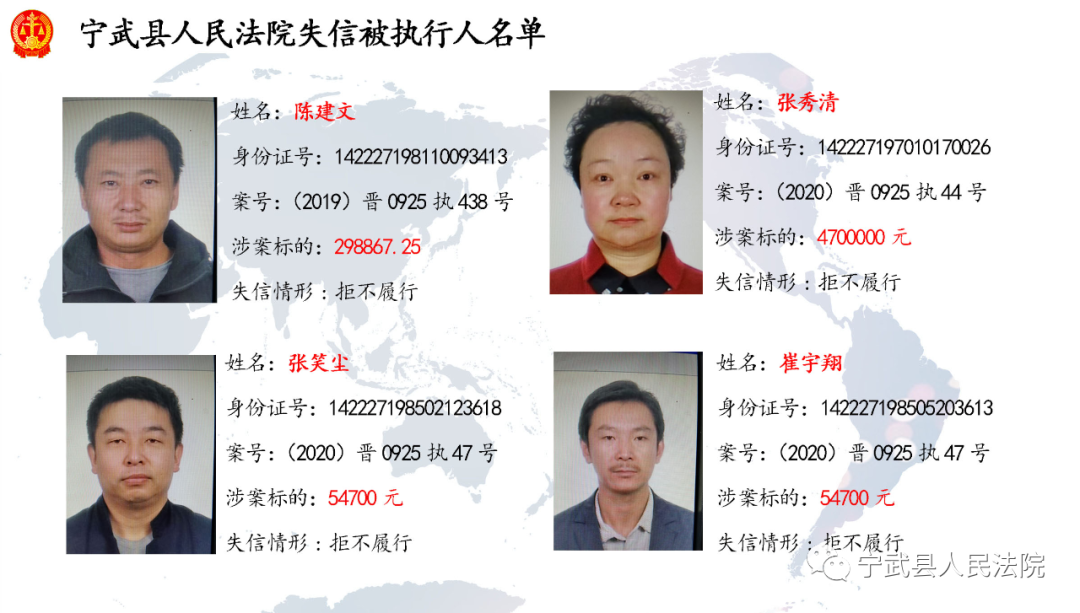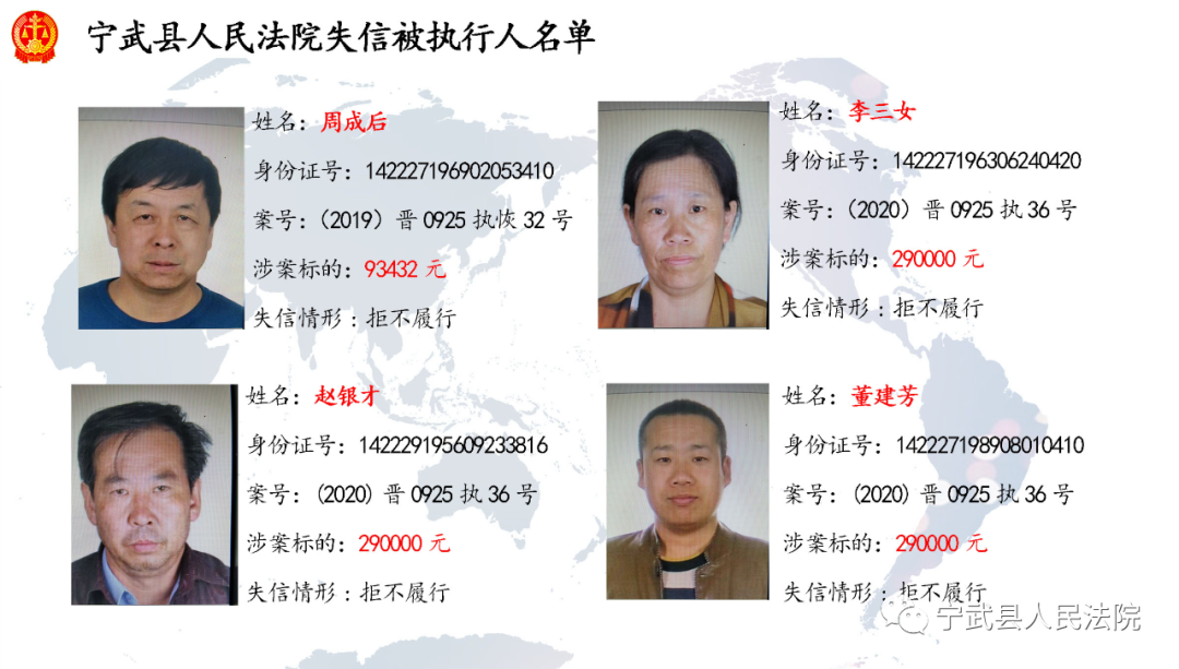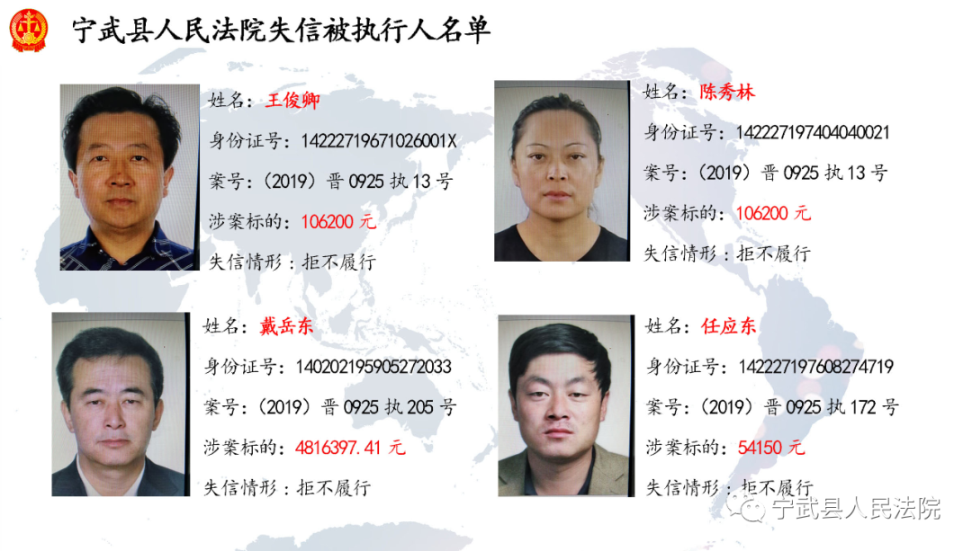 近日,寧武法院公布多名失信被執(zhí)行人