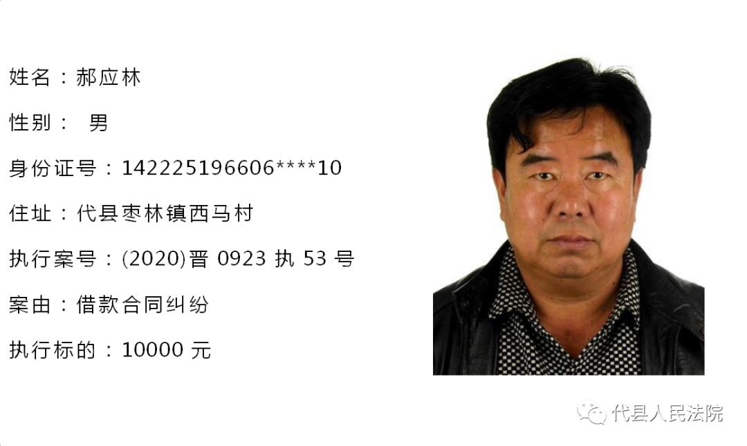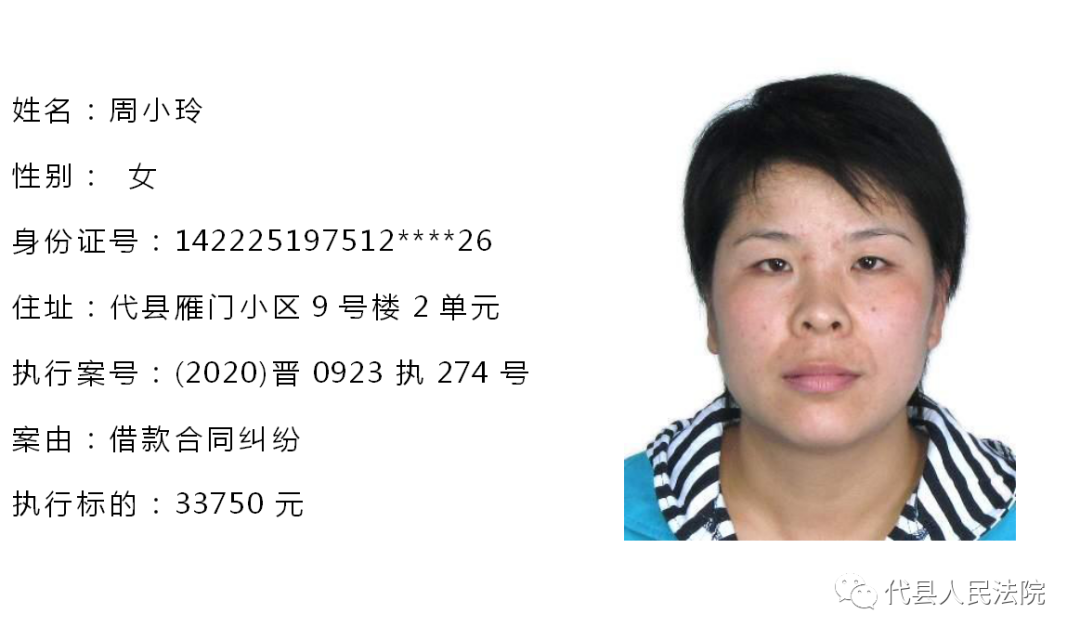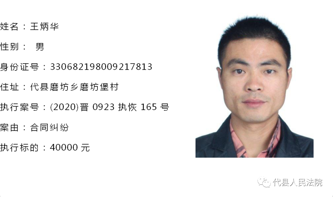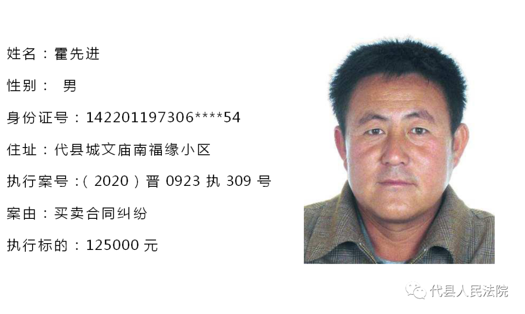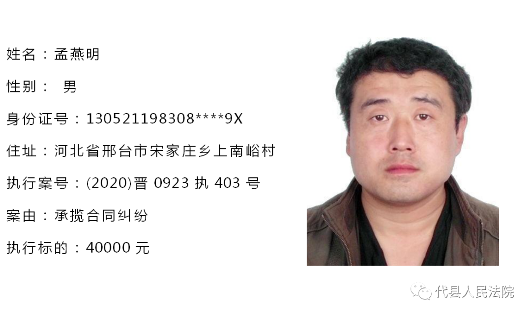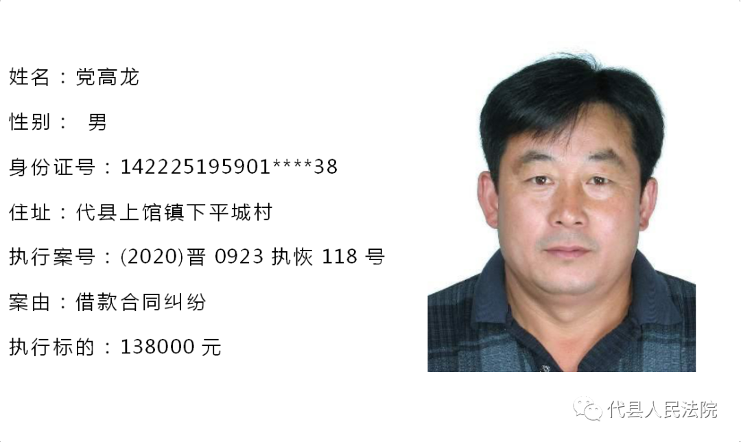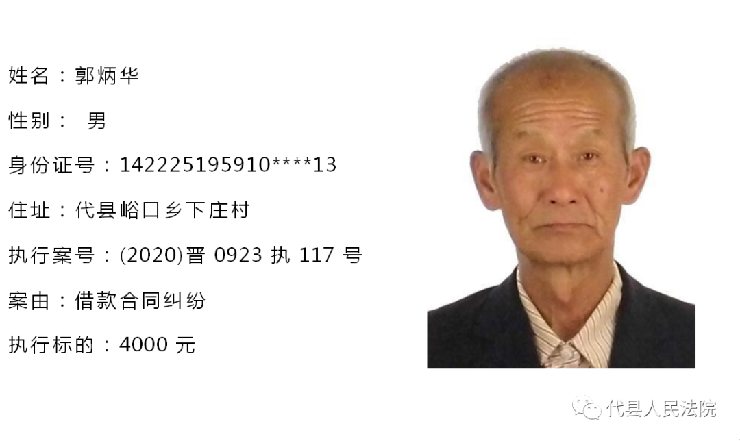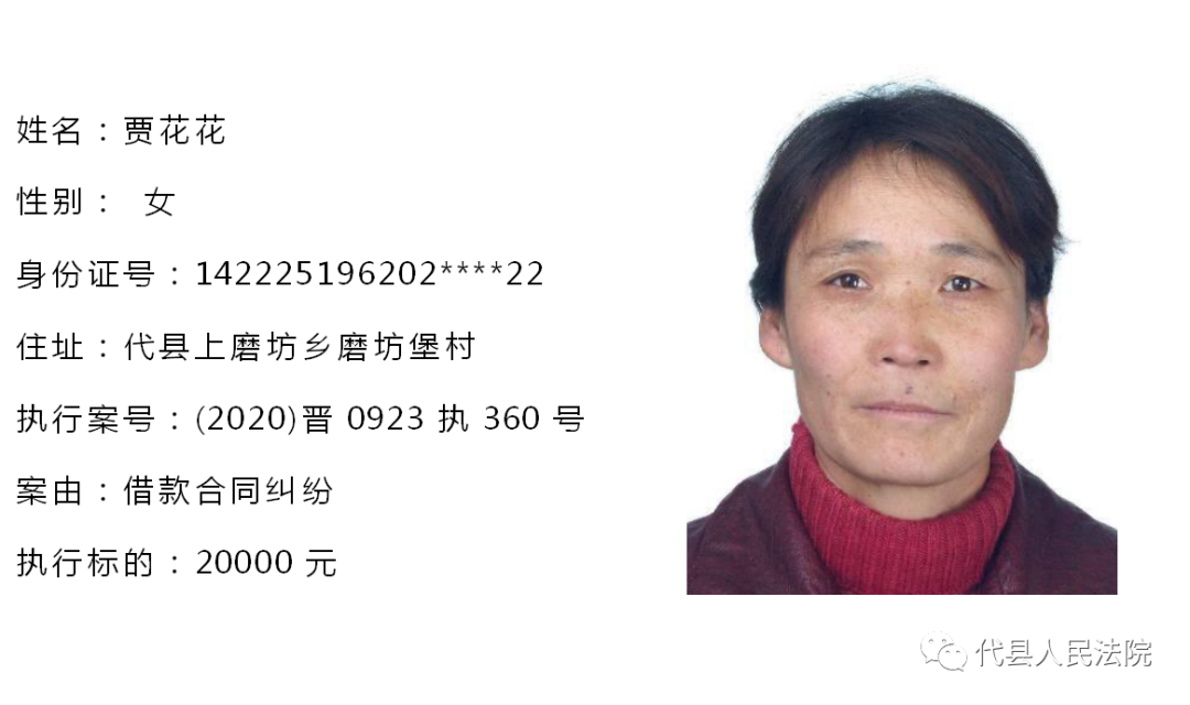 為促使被執(zhí)行人自覺履行生效法律文書確定的義務,推進社會信用體系建設,根據(jù)《中華人民共和國民事訴訟法》第二百五十五條、《最高人民法院關于公布失信被執(zhí)行人名單信息的若干規(guī)定》第七條之規(guī)定,現(xiàn)將代縣法院拒不履行生效法律文書的被執(zhí)行人公布如下,責令其立即向執(zhí)行法院履行義務。對涉嫌拒不執(zhí)行法院判決、裁定犯罪的被執(zhí)行人,將依照《中華人民共和國刑法》第三百一十三條之規(guī)定,嚴肅追究其刑事責任。