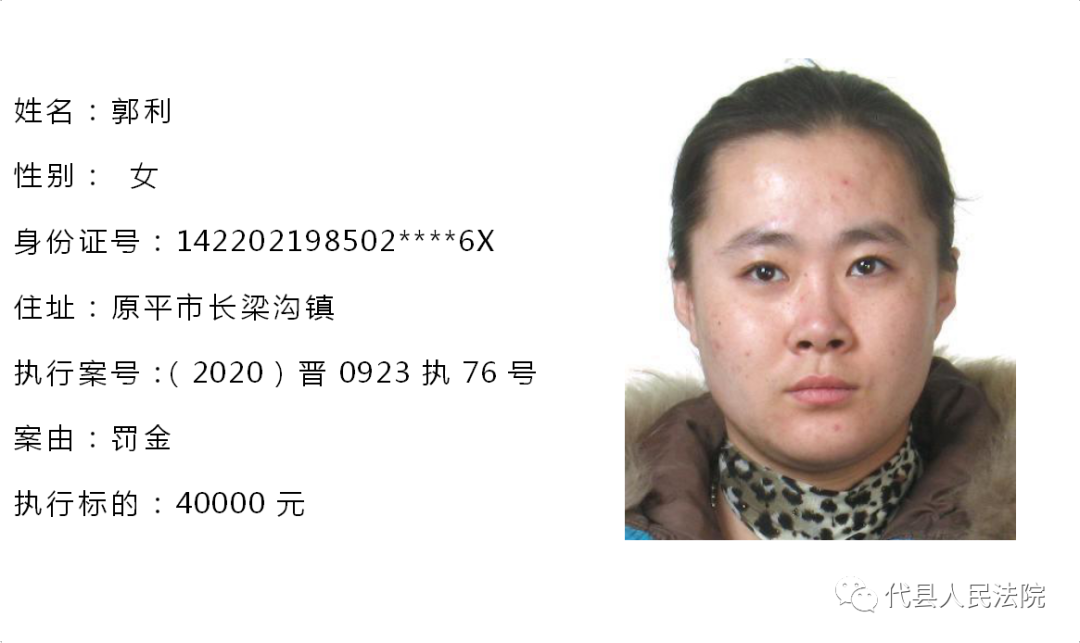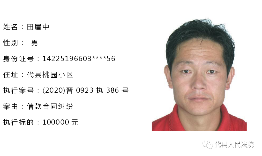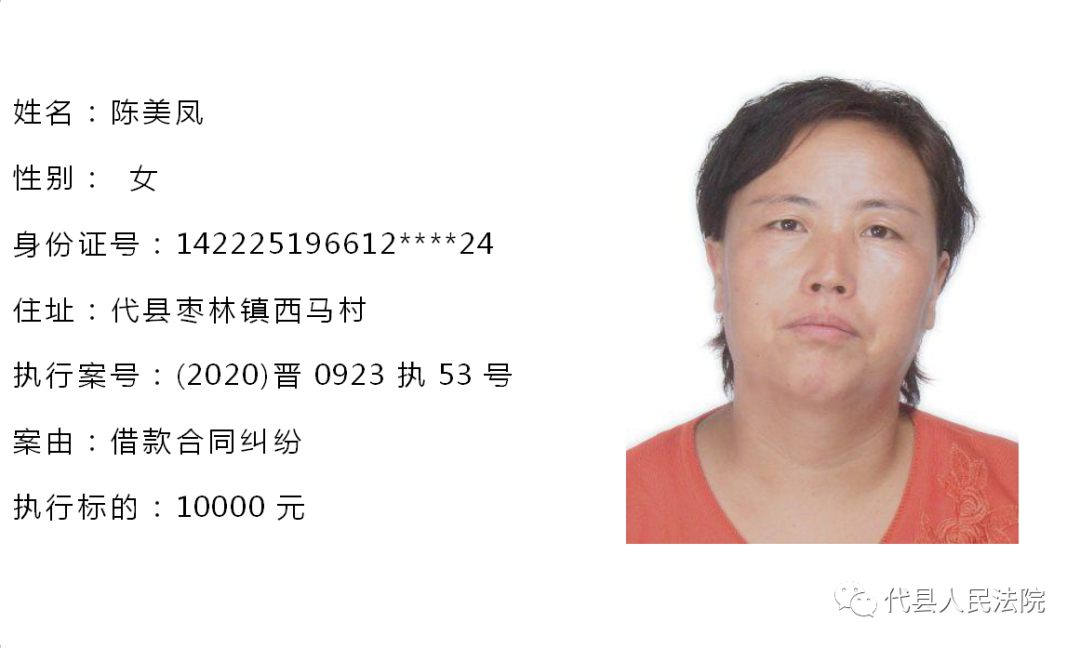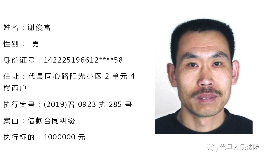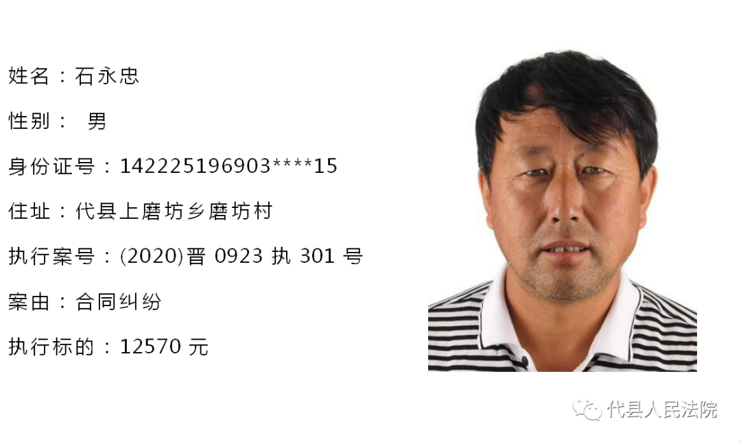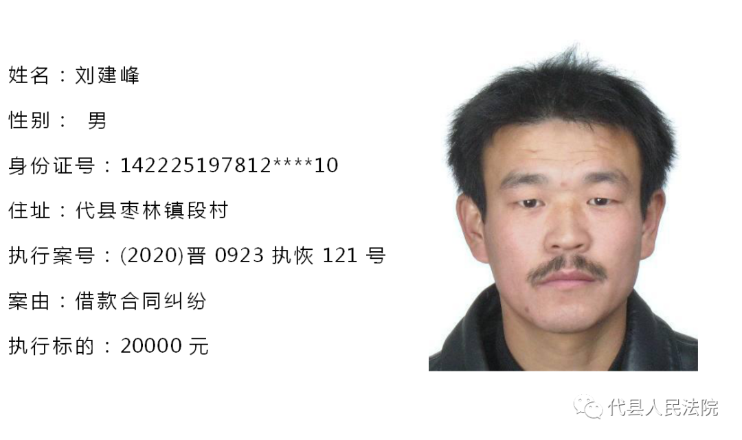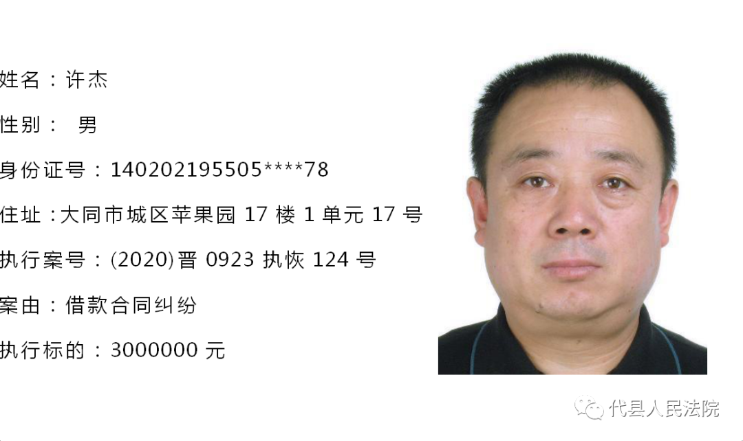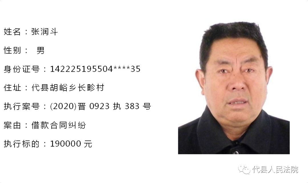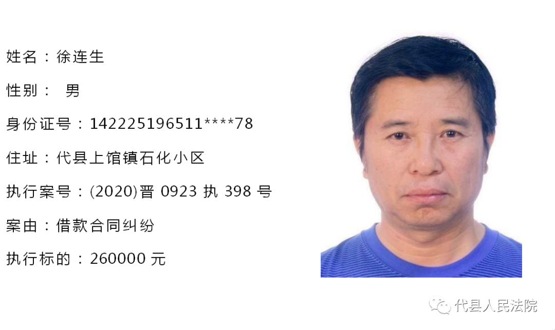 為促使被執(zhí)行人自覺履行生效法律文書確定的義務,推進社會信用體系建設,根據(jù)《中華人民共和國民事訴訟法》第二百五十五條、《最高人民法院關于公布失信被執(zhí)行人名單信息的若干規(guī)定》第七條之規(guī)定,現(xiàn)將代縣法院拒不履行生效法律文書的被執(zhí)行人公布如下,責令其立即向執(zhí)行法院履行義務。對涉嫌拒不執(zhí)行法院判決、裁定犯罪的被執(zhí)行人,將依照《中華人民共和國刑法》第三百一十三條之規(guī)定,嚴肅追究其刑事責任。