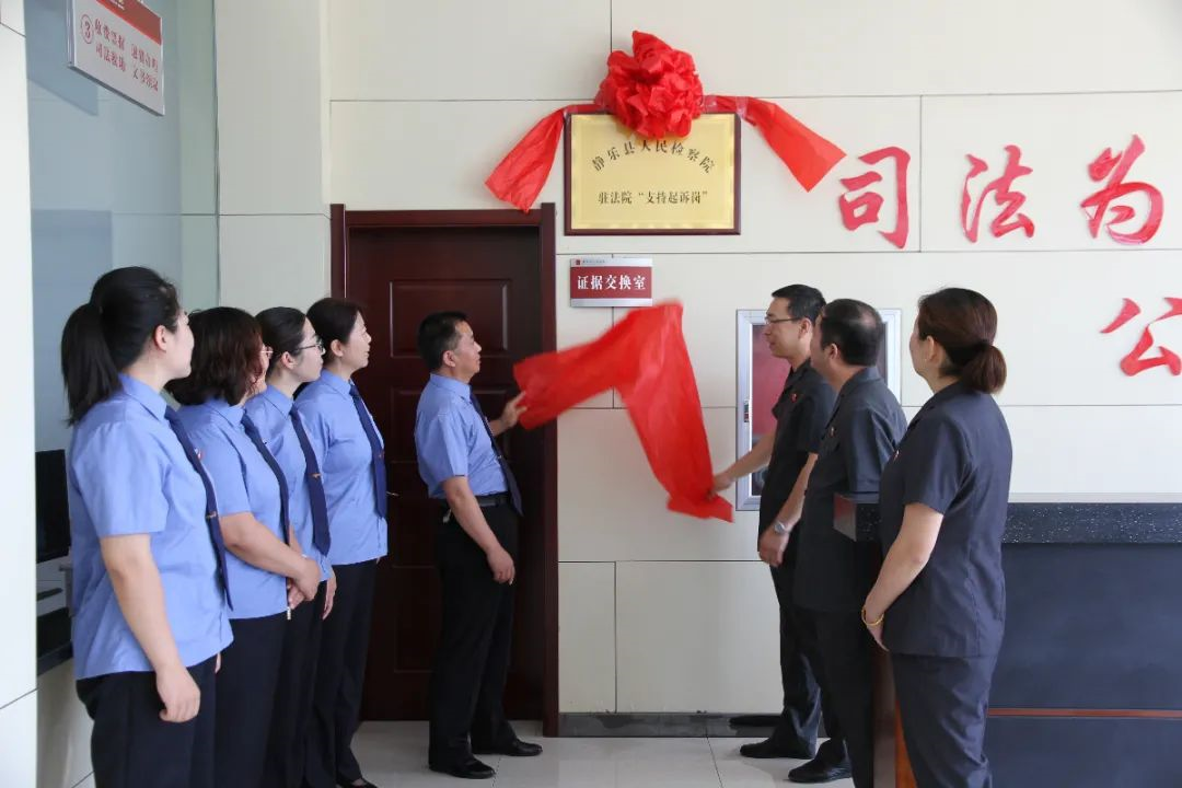 2021年8月20日,我院黨組書記、檢察長(zhǎng)李冰與縣法院黨組書記、院長(zhǎng)呂建文共同為靜樂縣人民檢察院駐法院“支持起訴崗”牌匾揭牌,通過在縣法院立案大廳懸掛崗位牌匾,設(shè)立檢察機(jī)關(guān)支持起訴窗口,擺放支持起訴知識(shí)手冊(cè),讓群眾直觀的了解檢察機(jī)關(guān)支持起訴檢察職能。
