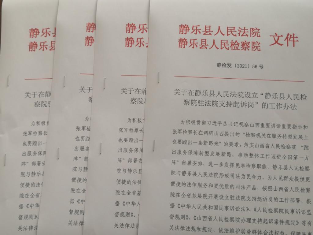 為依法維護(hù)弱勢(shì)群體的合法權(quán)益,向人民群眾提供更便捷的法律服務(wù),進(jìn)一步深化“我為群眾辦實(shí)事”實(shí)踐活動(dòng),根據(jù)《山西省人民檢察院辦理支持起訴案件規(guī)定(試行)》,近日,靜樂縣人民檢察院與靜樂縣人民法院聯(lián)合出臺(tái)了《關(guān)于在靜樂縣人民法院設(shè)立靜樂縣人民檢察院駐法院“支持起訴崗”的工作辦法(試行)》,并在縣法院設(shè)立了檢察機(jī)關(guān)“支持起訴崗”,加強(qiáng)與人民法院的溝通和協(xié)調(diào),推動(dòng)建立維護(hù)弱勢(shì)群體合法權(quán)益的長(zhǎng)效機(jī)制。
