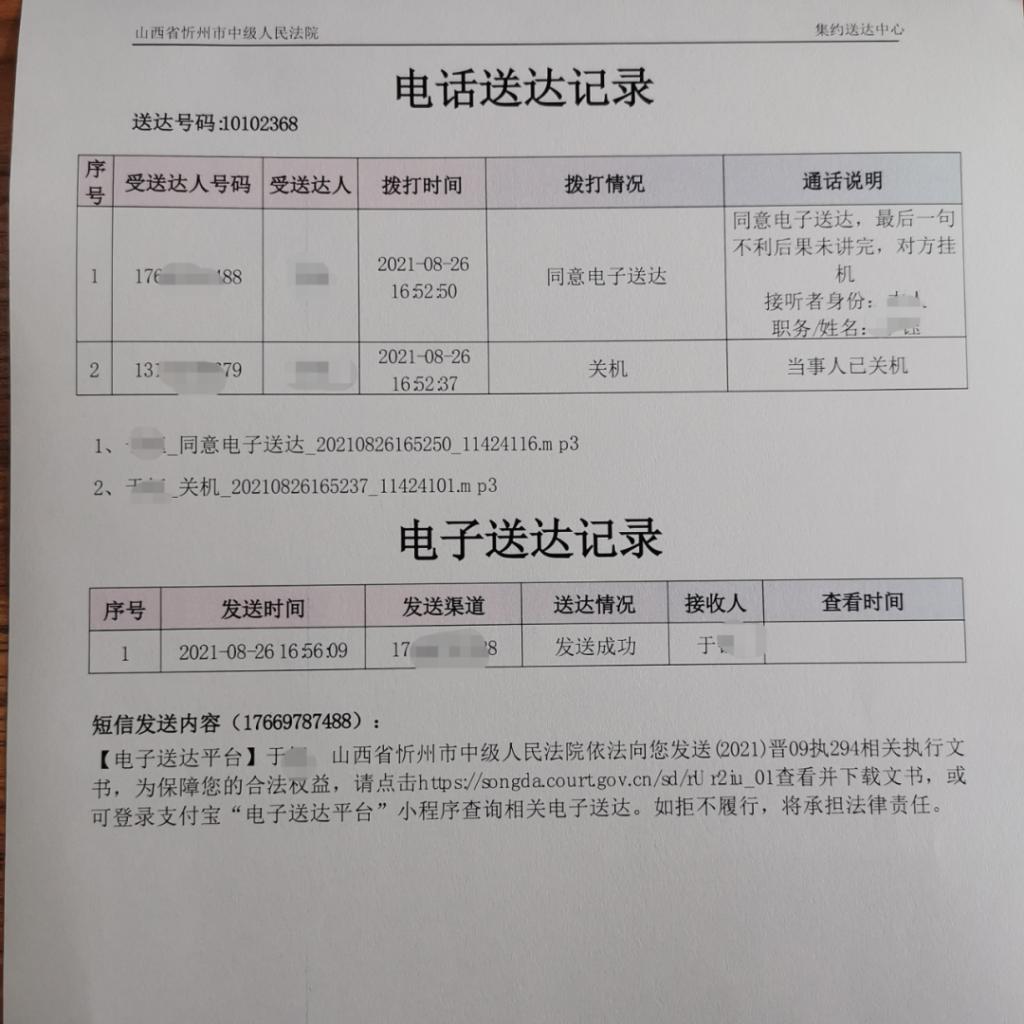 忻州中院“統(tǒng)一電子送達平臺”