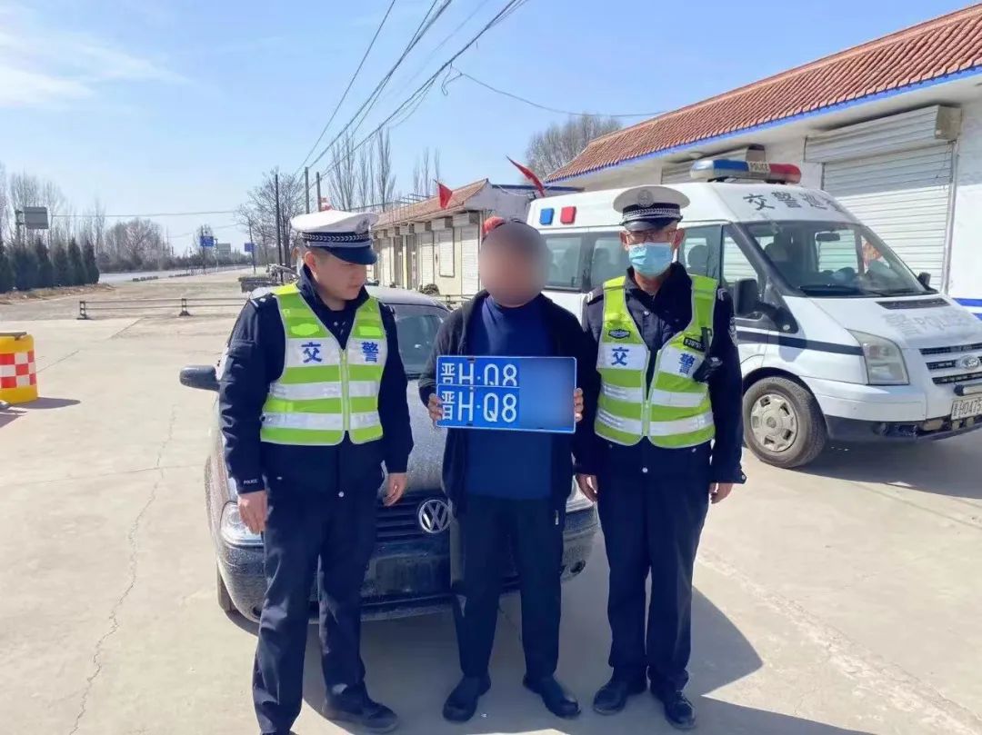 2023年3月8日11時(shí)許,指揮中心下令攔截一套牌車輛,原平交警立刻設(shè)攔截崗,當(dāng)民警發(fā)現(xiàn)該車輛后,立即示意車輛靠邊停車接受檢查。