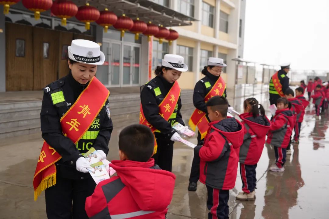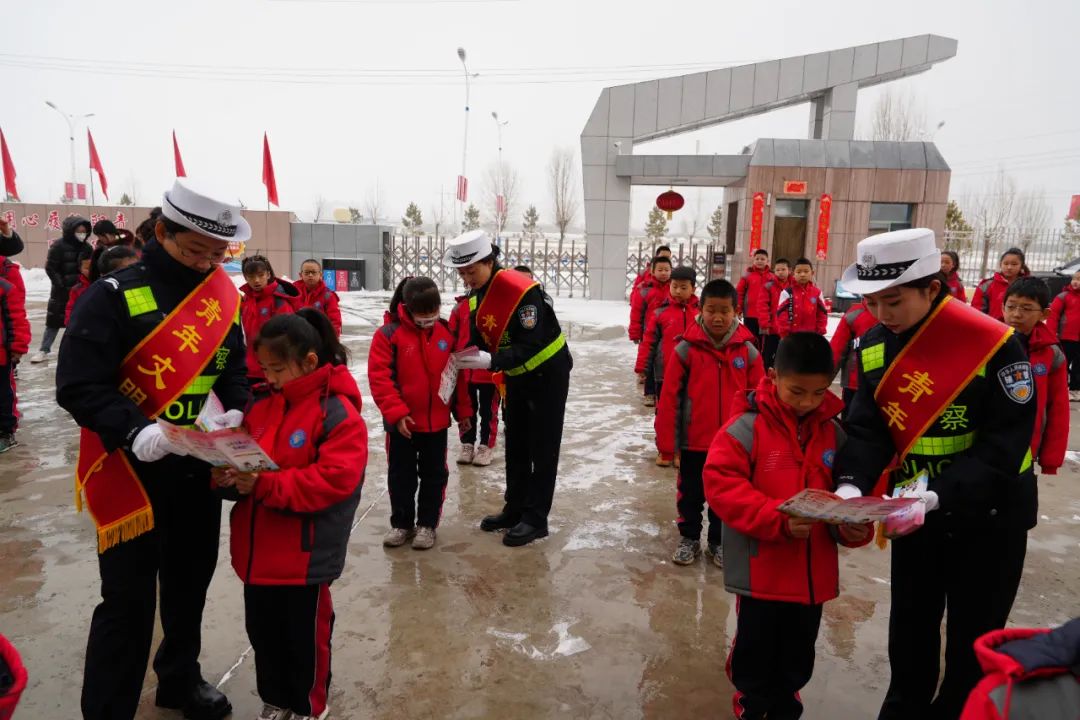 活動(dòng)中民輔警通過(guò)演示交通手勢(shì)指揮操,展示“一盔一帶”交通安全海報(bào),發(fā)放交通安全宣傳彩頁(yè)等形式,使學(xué)生們理解并熟記基本的交通安全知識(shí),增強(qiáng)自身“知危險(xiǎn)、會(huì)避險(xiǎn)”的能力,做到遵章守法,文明出行。