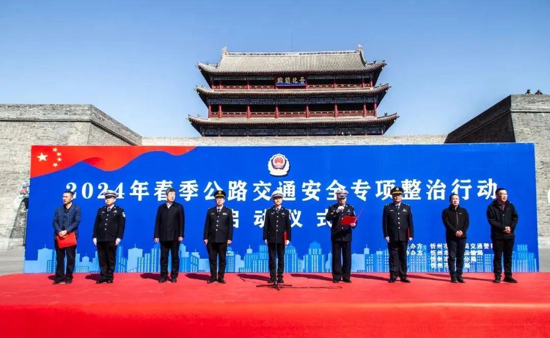 3月20日上午,忻州市2024年春季公路交通安全專項(xiàng)整治行動(dòng)在古城北城門樓廣場(chǎng)正式拉開帷幕。市公安局交警支隊(duì)聯(lián)合市交通運(yùn)輸局、市公路分局、市教育局舉行了啟動(dòng)儀式和宣傳活動(dòng)。忻州市公安局交警支隊(duì)支隊(duì)長(zhǎng)劉元豐、副支隊(duì)長(zhǎng)張全勇、秩序科科長(zhǎng)白海龍,忻州市交通運(yùn)輸綜合行政執(zhí)法隊(duì)隊(duì)長(zhǎng)王卓斌、副隊(duì)長(zhǎng)于雷,忻州市教育局安全科科長(zhǎng)段進(jìn)元,忻州市公路分局養(yǎng)路科科長(zhǎng)吳俊、副科長(zhǎng)趙峰出席啟動(dòng)儀式。交警支隊(duì)直屬各大隊(duì)、執(zhí)法小分隊(duì),交通運(yùn)輸綜合行政執(zhí)法隊(duì)、客運(yùn)企業(yè)、運(yùn)輸企業(yè)、駕校代表及媒體記者共200余人參加了活動(dòng)。