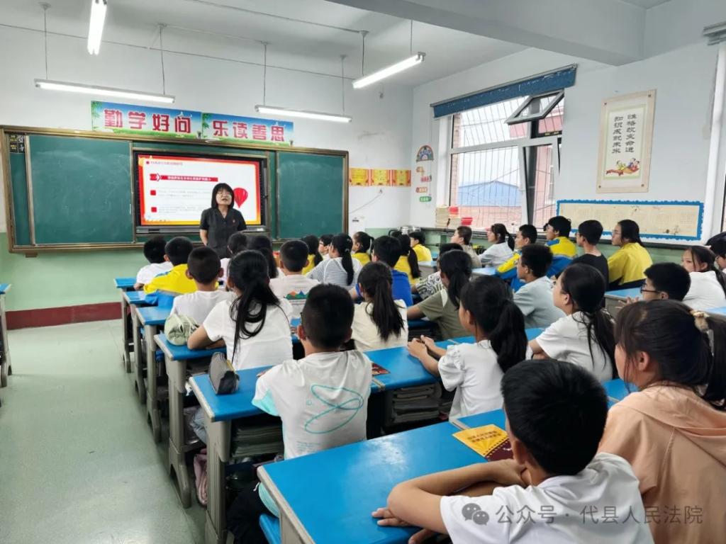 為加強(qiáng)校園法治教育,進(jìn)一步提高未成年人的法治意識(shí)和法律素養(yǎng),助推平安校園、法治校園建設(shè)。近日,代縣法院深入大眾小學(xué)、代縣五中小學(xué)部開展普法教育。