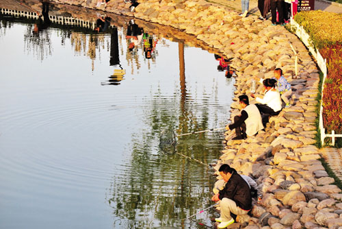 春光明媚,草綠花香,城區(qū)人民公園游人如織,可是總有一些人無視公園里“禁止垂釣”的警示標牌,在湖邊垂釣、撈魚,給公園美景增添了一抹不文明、不和諧的色彩。圖為4月20日下午記者攝于人民公園。(魯明強 攝)