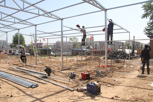 6月2日,原平市新原鄉(xiāng)柳巷村花農(nóng)新建的花卉博覽大廳開(kāi)始焊接鋼架,大棚建成后,可擴(kuò)大花卉分區(qū)分類(lèi)擺放,使消費(fèi)有了更好的花卉欣賞、選擇空間。成為原平最大的花卉超市。(褚震 攝)