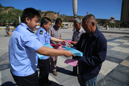 6 月24日,靜樂縣公安局在該縣街頭多處設點開展禁毒宣傳活動,通過掛橫幅、立展板、發(fā)放宣傳資料、現(xiàn)場解答群眾咨詢等方式大力宣傳毒品的危害性?;顒赢斎?,共發(fā)放禁毒宣傳資料3500 余份,擴大了禁毒宣傳覆蓋面,使廣大群眾自覺抵制毒品危害的意識進一步得到了提高。(李敏 攝)