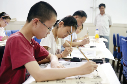7 月17 日,在靜樂縣青少年文化活動(dòng)中心,孩子們正在認(rèn)真練習(xí)書法。進(jìn)入暑期以來(lái),該縣興趣特長(zhǎng)班又火熱起來(lái),學(xué)生們利用暑假時(shí)間投身于各自的興趣愛好之中,讓自己的假期變得更為充實(shí)、更有意義。(閆曉梅 攝)