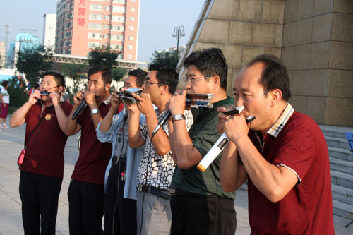 7月30日,原平市口琴協(xié)會演奏人員正在廣場上給觀眾演奏精彩的口琴技藝,深受群眾歡迎。該市注重文化建設,活躍群眾文化生活多姿多彩。(趙春曉 攝)