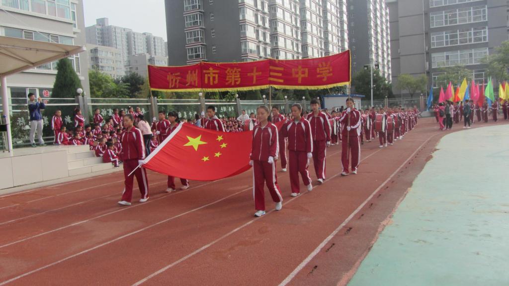 沐浴著秋天的朝陽,享受著清爽的秋風(fēng)。9月28日上午,忻州市第十三中學(xué)第十一屆秋季運動會開幕式在學(xué)校操場隆重舉行。伴隨著激昂的運動員進行曲,國旗隊、鼓樂隊、彩旗隊、裁判員代表和運動員方隊秩序井然而又氣勢磅礴地走入會場。在莊嚴的國歌聲中,全體師生凝神肅立,齊唱國歌。鮮艷的五星紅旗在操場上冉冉升起。