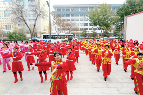 “我們舉辦這次活動就是為了緬懷革命先烈、弘揚長征精神。同時也讓更多的老年人能夠積極參加文化娛樂活動,在鍛煉身體的同時也擁有一個愉快的心情?!?6歲的精品鑼鼓隊負(fù)責(zé)人梁月娥對記者說。圖為活動現(xiàn)場(王菲 攝影報道)