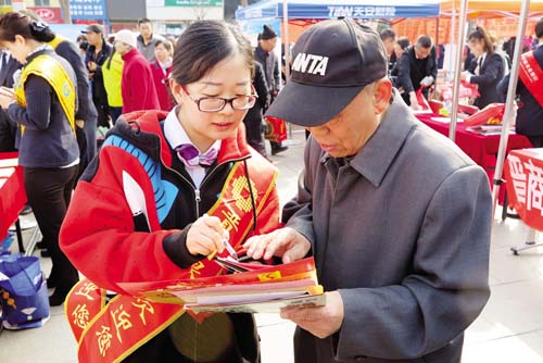 3月15日,忻州城區(qū)體育廣場上以“網(wǎng)絡誠信消費無憂”為主題的3·15國際消費者權(quán)益日宣傳活動火熱進行?;顒蝇F(xiàn)場,各部門和企業(yè)通過發(fā)放宣傳資料、設立咨詢臺、現(xiàn)場受理群眾投訴舉報、提供服務等方式,宣傳《消費者權(quán)益保護法》、《反不正當競爭法》、《無照經(jīng)營查處辦法》等法律法規(guī)以及食品藥品安全、識假辨假等各類知識,吸引了眾多群眾積極參與。受理投訴臺前,陸續(xù)有消費者前來投訴,且有不少年輕人,所反映的問題既有涉及家具、汽車等金額較大的線下消費活動,也有通過電商平臺進行的線上交易。市工商局、消費者協(xié)會的工作人員將消費者投訴的問題一一記錄在冊,并表示會盡快調(diào)查處理。本版圖片攝影 魯明強 王 菲